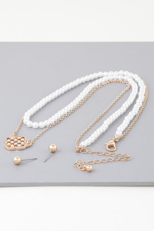 Checkered Clover Pearl Chain Necklace