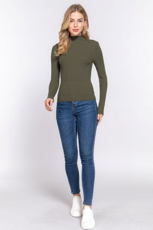 Long Slv Mock Neck Rib Sweater